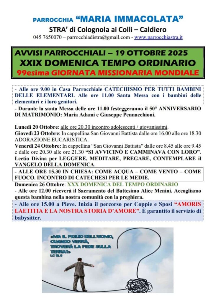 XXIX DOMENICA TEMPO ORDINARIO