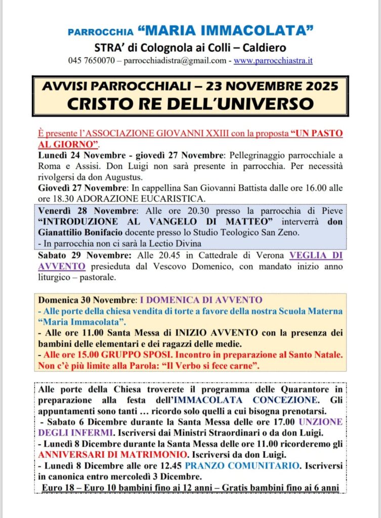 Sabato : 17.00 – 18.30Domenica : 8.00 – 9.30 – 11.00Lun-Mar-Mer-Ven : 8.15Giovedì : 18.30